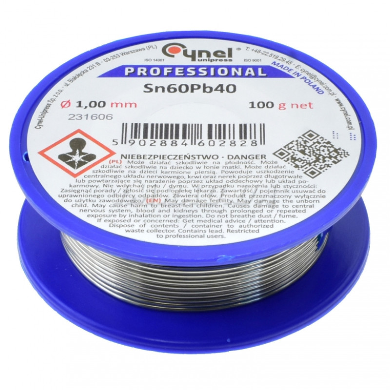 Припой LC60-1.00/0.1 (Sn60Pb40) без флюса (оловянно-свинцовый сплав) для ручной и монтажной пайки электроники