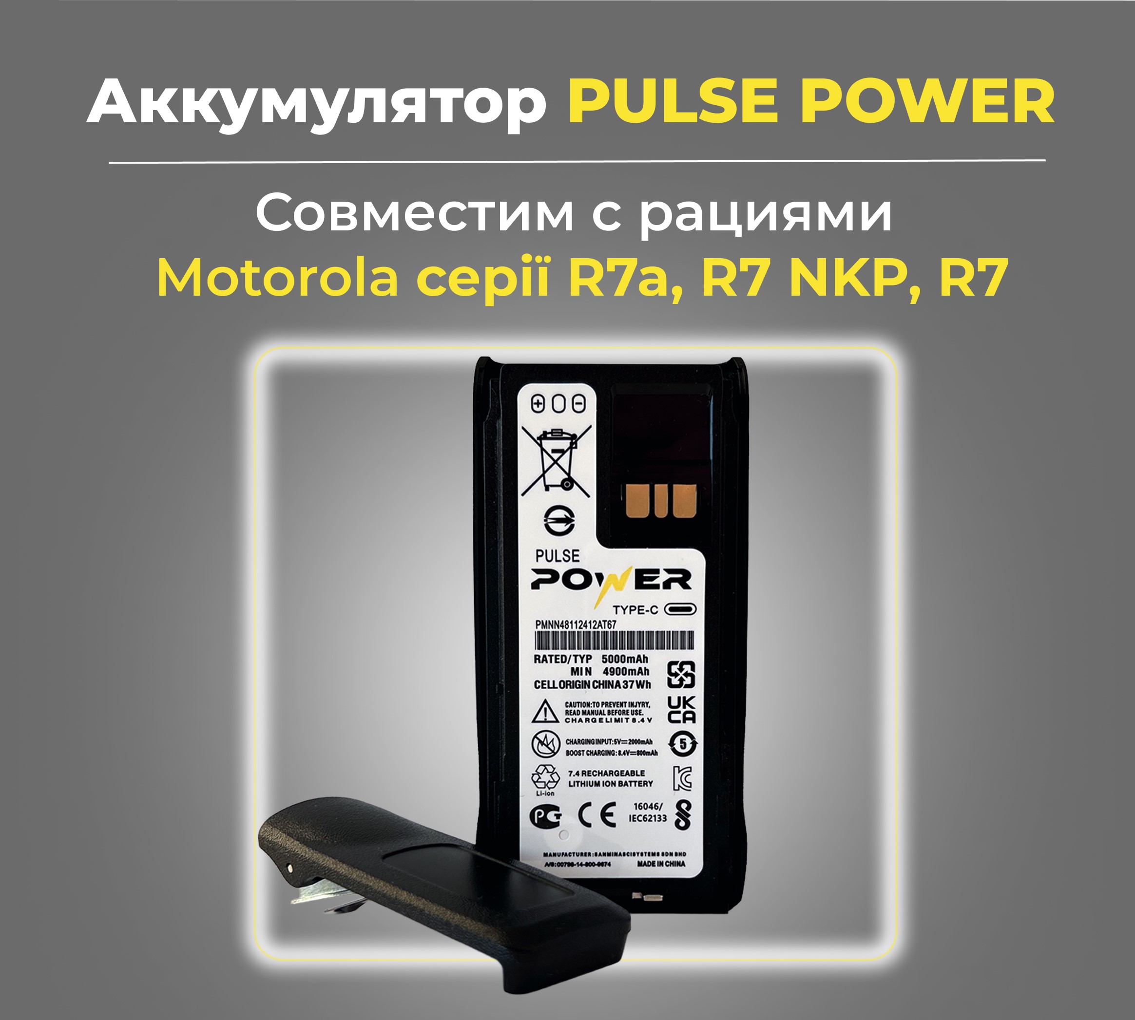 Модель усиленного аккумулятора PMNN4808А для рации Motorola емкостью 5000 mAh, совместимый с радиостанциями R7a, R7 NKP, R7 FKP, CP250, PR400.