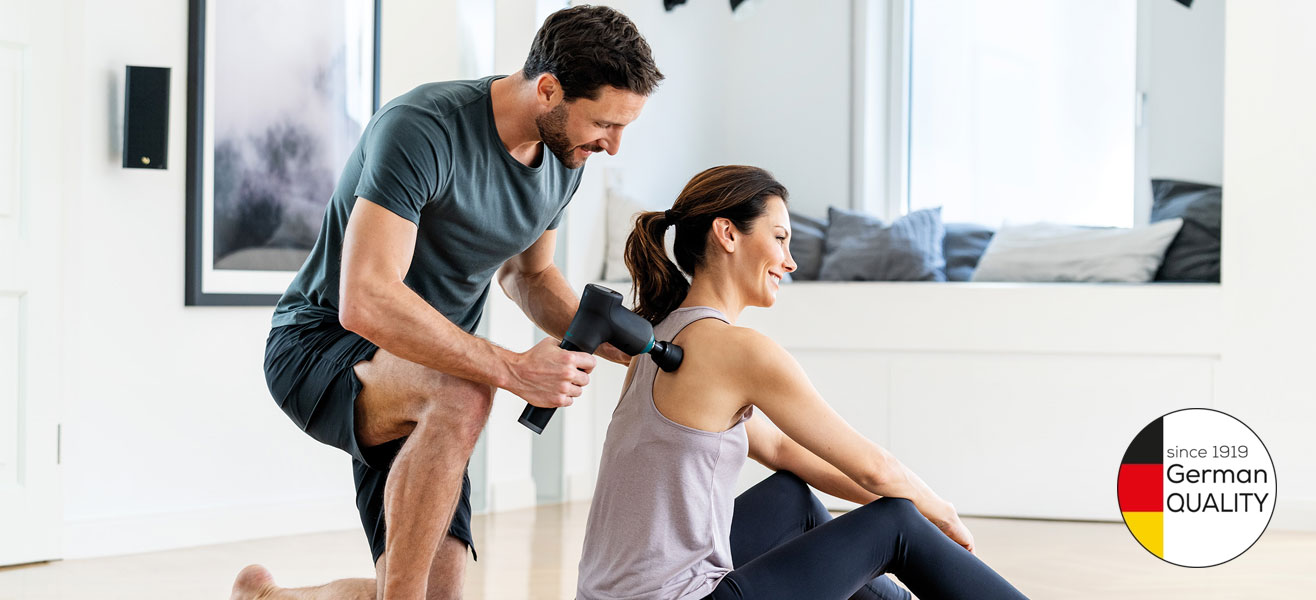 Мощный перкуссионный массажер для профессионального массажа. Эффективно снимает напряжение, обеспечивает глубокий массаж фасций, укрепление и регенерацию мышц