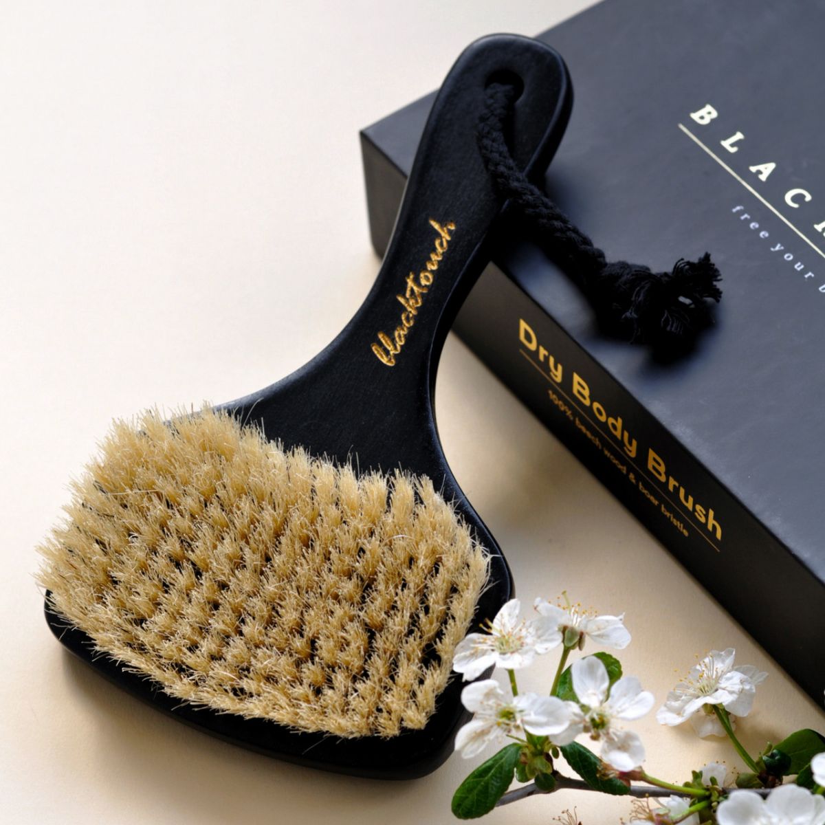 Массажная щетка для процедуры сухого массажа Black Touch используется для улучшения состояния кожи и уменьшения проявлений целлюлита. Регулярный массаж сухой щеткой стимулирует лимфатическую систему, помогает вывести лишнюю воду из организма, мягко отшелушивает и подтягивает кожу, обеспечивая гладкость и сияние. Размер щетки и щетины обеспечивают высокую эффективность процедуры и комфорт.