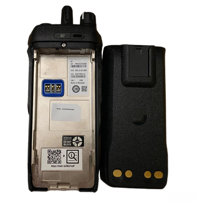 Motorola R7 - эта цифровая портативная прийомопередающая радиостанция, которая обеспечивает громкое, четкое и настраиваемое звучание в крепком, надёжном корпусе с возможным подключением различных дополнительных устройств