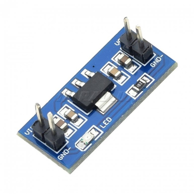 Модуль на основі AMS1117 являє собою понижувальний лінійний стабілізатор напруги з широким діапазоном вхідної напруги та низьким падінням напруги (Low dropout) на регулювальному елементі. Він використовується в електронних проєктах для живлення компонентів, що потребують стабільної низької напруги, живлення аналогових схем датчиків або як компонент у системах розподіленого живлення. Має захист від КЗ і перегріву.