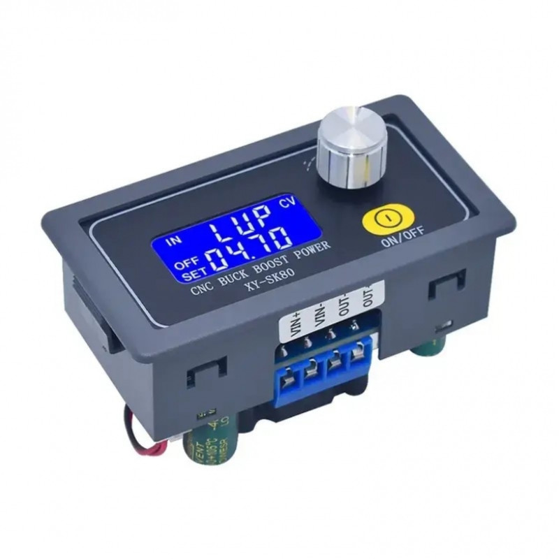 Модуль XY-SK80 є універсальним понижувально-підвищувальним DC-DC перетворювачем, призначеним для використання в лабораторних джерелах живлення та інших застосуваннях, що потребують стабілізованої вихідної напруги. Він має цифрове управління та забезпечує широкий діапазон регулювання вихідної напруги й струму, що дозволяє адаптувати його під різні інженерні завдання. Встановлені параметри напруги та струму можуть бути заблоковані для запобігання випадковим змінам і аварійним ситуаціям!
