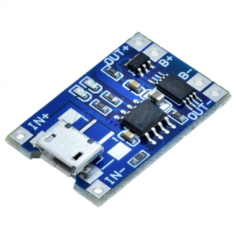 Плата являє собою автоматичний зарядний пристрій для однієї комірки літій-іонної батареї (1S Li-ion (3.7V)) з функцією захисту. Вона побудована на чипі контролера заряду TP4056, чипі BMS DW01A і здвоєному MOSFET-ключі FS8205. Підтримує двоступеневий алгоритм заряду CC+CV. Широко використовується для переведення різних пристроїв на живлення від літієвих акумуляторів, як зарядний модуль у саморобних конструкціях і портативній техніці тощо.