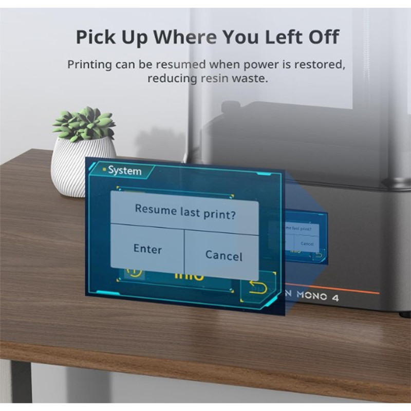 Висока точність Photon Mono 4 оснащений 7-дюймовим РК-екраном з роздільною здатністю до 10K (9024 x 5120 пікселів), що на 105% точніше, ніж у Photon Mono 2. Точність пікселів по осі XY становить 17 х 17 мкм