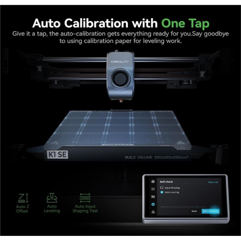 Автоматичне калібрування одним дотиком: Натисніть і відійдіть. Автоматичний калібрування creality 3d принтер k1 se підготує все для вас. Попрощайтеся з неприємними роботами з вирівнювання за допомогою калібрувального паперу.