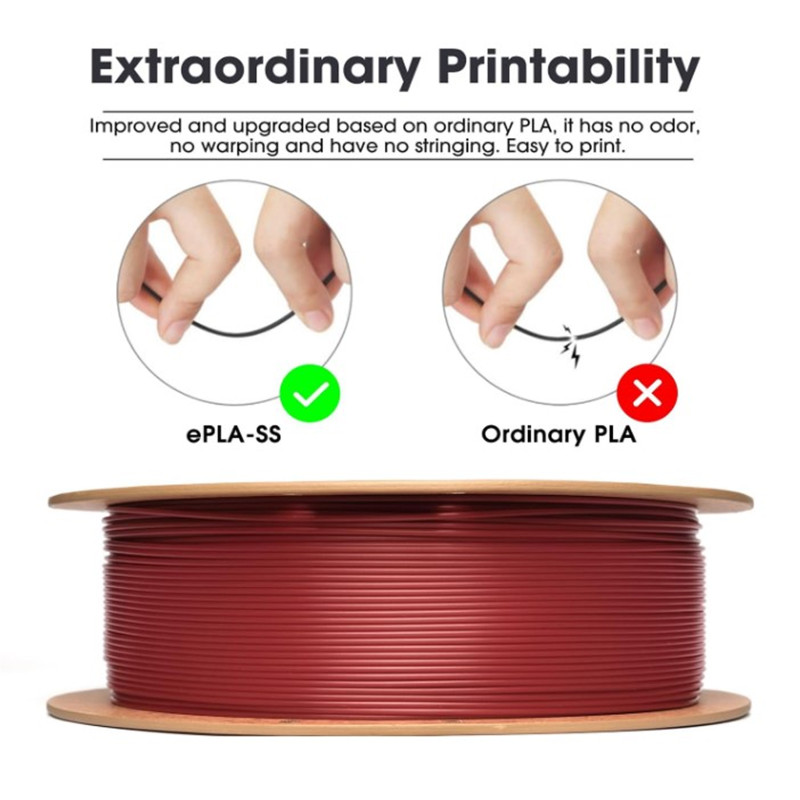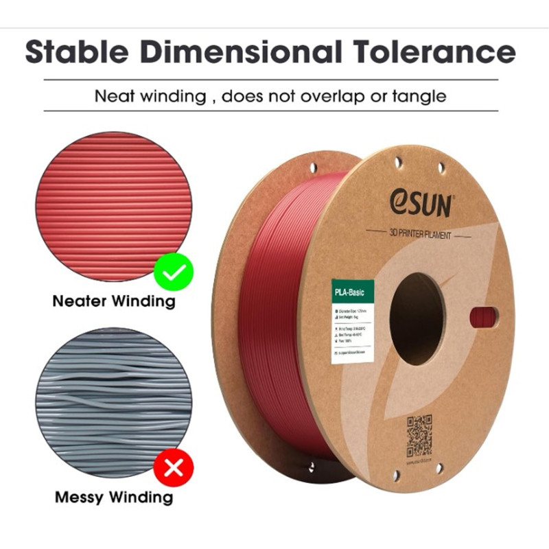 - Нитка eSUN PLA Basic, вдосконалена на основі звичайного PLA, не тільки зберігає свої екологічно чисті властивості, але й додає спеціальні матеріали для посилення своєї плинності та швидкої продуктивності друку, що робить її ідеальним вибором економічно ефективних витратних матеріалів для швидкого друку.