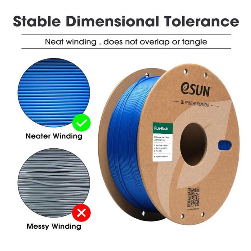 - Нитка eSUN PLA Basic, вдосконалена на основі звичайного PLA, не тільки зберігає свої екологічно чисті властивості, але й додає спеціальні матеріали для посилення своєї плинності та швидкої продуктивності друку, що робить її ідеальним вибором економічно ефективних витратних матеріалів для швидкого друку.