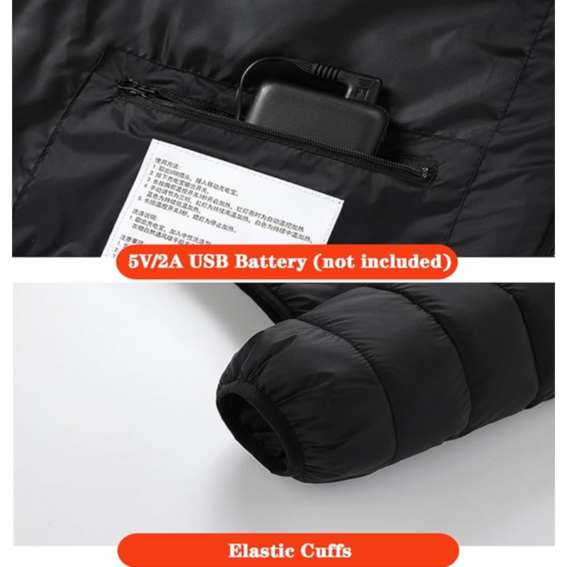 Наша куртка з електропідігрівом - чудовий вибір для того, щоб залишатися в теплі взимку. Вона спеціально розроблена для забезпечення оптимального тепла та комфорту під час активного відпочинку на природі, такого як катання на лижах, кемпінг, піші прогулянки, альпінізм, катання на човнах, риболовля тощо. Завдяки функції обігріву ви можете насолоджуватися улюбленими зимовими розвагами, не турбуючись про холод. (Будь ласка, зверніться до таблиці розмірів, перш ніж вибрати свій розмір) (Акумуляторна батарея не входить до комплекту)