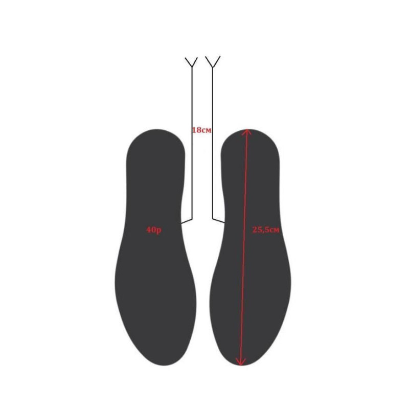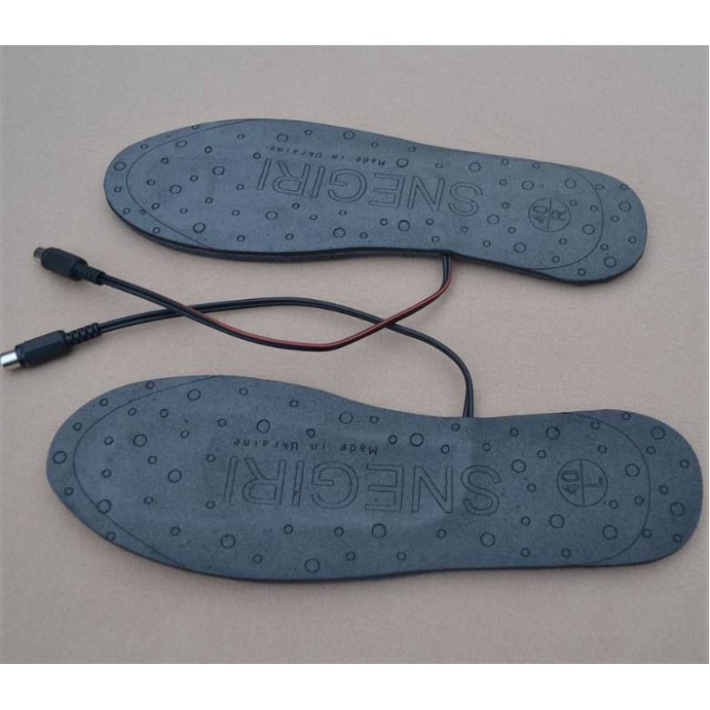 - Матеріал устілки EVA, нижній шар щільністю 100 шор ізолює холод від підошви, верхній шар щільністю 80 шор розподіляє тепло від нагрівального елемента.