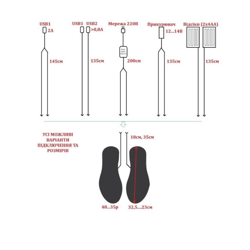 - Довжина дроту від устілки 18 см + 135...200 см (кабель, що підключається).