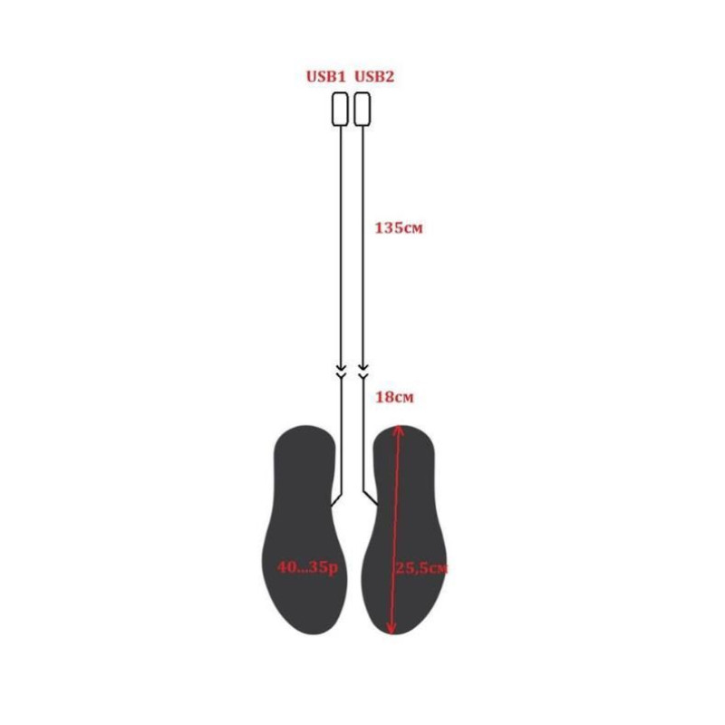 - Комплект: дві устілки 40 розміру з можливістю підрізки до 35 розміру, два окремих дроти USB.
