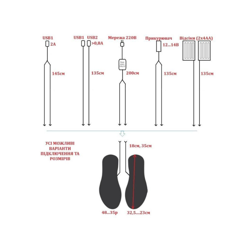 - Довжина дроту від устілки 18 см + 135...200 см (кабель, що підключається).