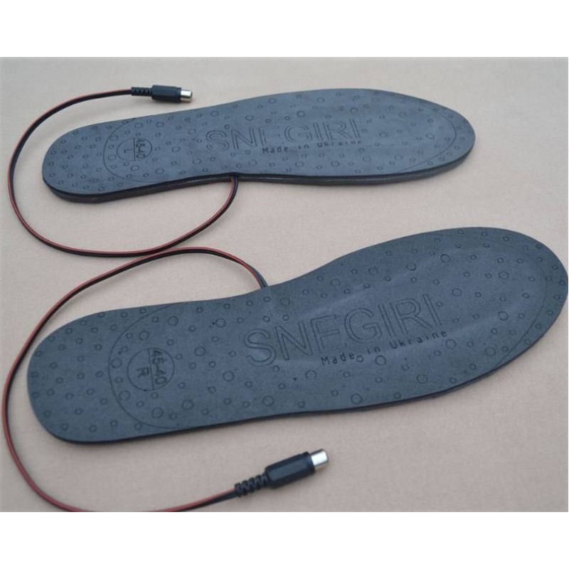 Устілки з підігрівом SNEGIRI встановлюються у взуття замість старих устілок, або поверх старих устілок, якщо дозволяє місце. Кабель (35 см) виводиться із взуття і зʼєднується з одним із кабелів живлення. Джерела живлення (Power Bank, батарейки або ін.) розміщуються в кишені одягу, а кабелі від них проводяться до устілок непомітно під одягом. Під час ходьби кабелі не заважають, а підігрівом можна керувати з кишені. За необхідності швидко розбутися кабель устілки просто відключається від кабелю живлення біля взуття.