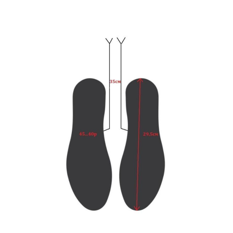 - Матеріал устілки EVA, нижній шар щільністю 100 шор ізолює холод від підошви, верхній шар щільністю 80 шор розподіляє тепло від нагрівального елемента.