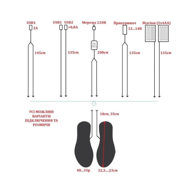 - Довжина дроту від устілки 35 см + 135...200 см (кабель, що підключається).