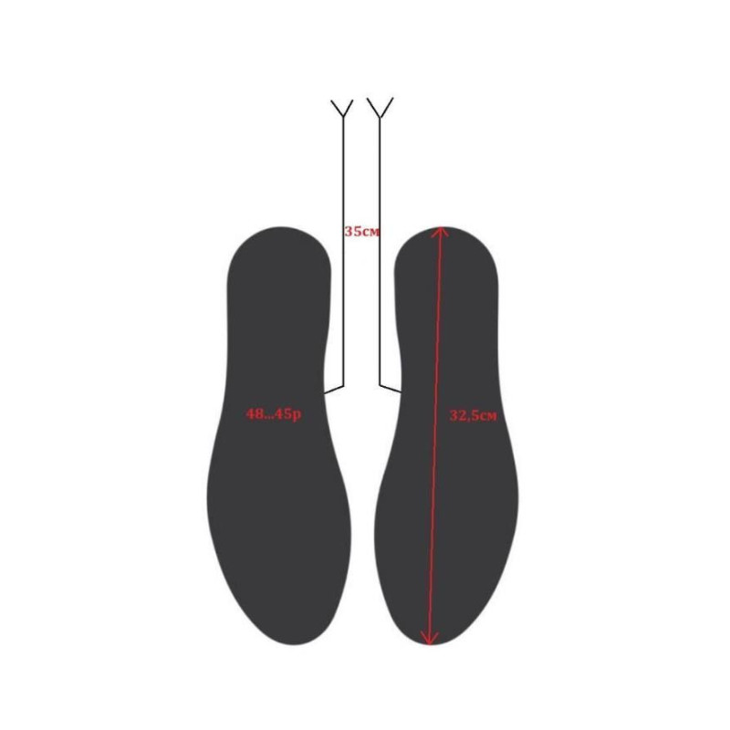 - Матеріал устілки EVA, нижній шар щільністю 100 шор ізолює холод від підошви, верхній шар щільністю 80 шор розподіляє тепло від нагрівального елемента.