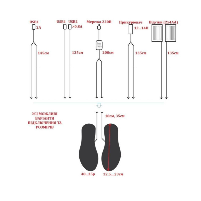 - Довжина дроту від устілки 35 см + 135...200 см (кабель, що підключається).