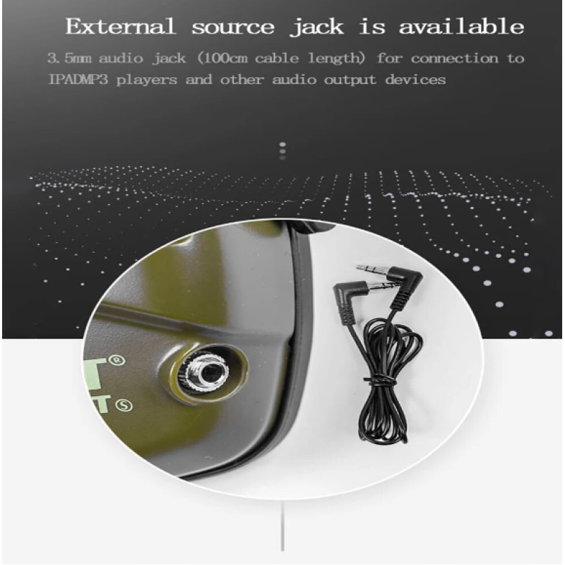 Зовнішній аудіороз'єм дозволяє навушникам відпрацьовувати підвійну функцію стереонавушників при підключенні до MP3-плеєра або іншого джерела звуку.