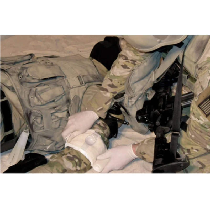 Укомплектований 3 метрами стерильної Z-подібної марлі за подушечкою для рани, OLAES® також оснащений такими деталями, як знімний оклюзійний пластиковий лист для підвищення універсальності лікування. Він поставляється зі справжньою притискною чашкою для створення цілеспрямованого тиску на місце рани, щоб допомогти закупорити пошкоджені судини. Він також діє як жорсткий щиток для очей при травмах очей згідно з рекомендаціями CoTCCC. Гачок і петля Control Strips™ вбудовані в еластичну плівку, щоб запобігти випадковому розгортанню, закріплюючи екстрену пов’язку протягом усього процесу накладення.