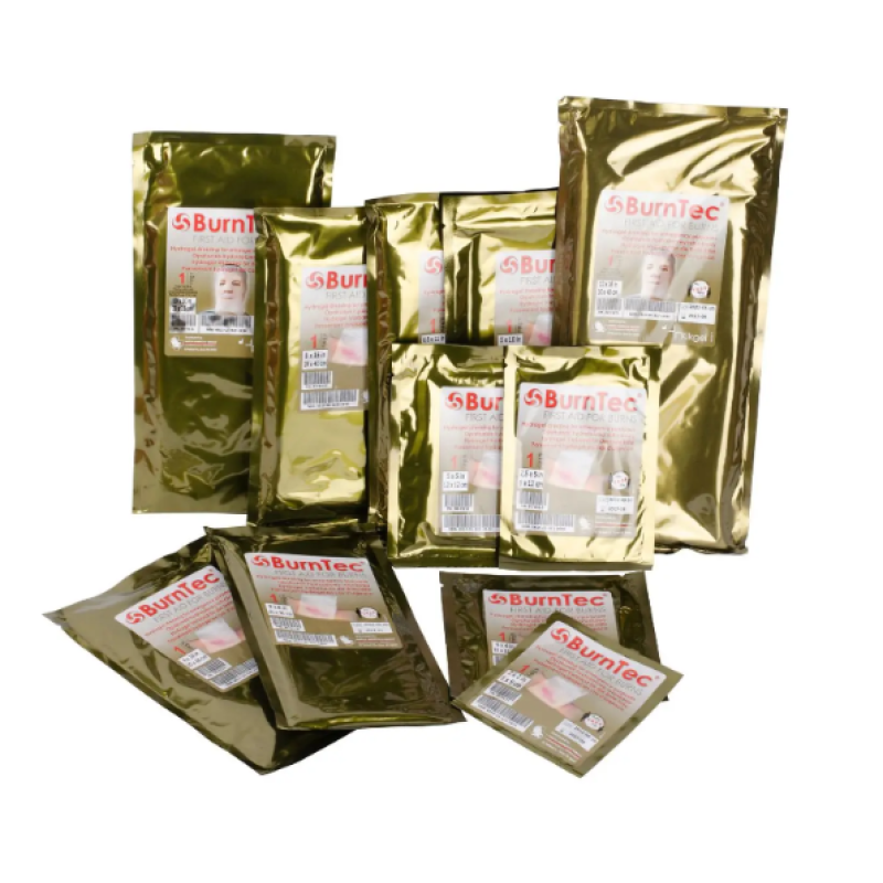 Burntec Dressing Variety Pack — комплект гідрогелевих стерильних пов'язок для лікування опіків 1, 2 та 3 ступеня (термічних, хімічних, електричних) та інших ушкоджень шкіри, таких як сонячні опіки, садна, подразнення шкіри, синці та набряки (укуси комах). Забезпечує прохолодний, заспокійливий ефект до 24 годин. Легко використовувати, не розливаючи та не пошкоджуючи гідрогель. Проникні для водяної пари та кисню, але непроникні для бактерій. Біосумісні та гіпоалергенні. Знижують ризик виникнення гіпертрофічних рубців.