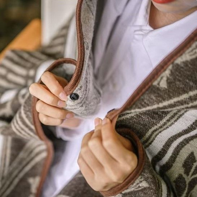 Важливою перевагою такої ковдри є вологостійкі властивості, вона виготовлена з 80% поліестру. Завдяки вовняній пряжі поверхня м’яка на дотик, має здатність зберігати тепло. Ковдру можна використовувати в якості накидки, це дуже зручно. Тож можна відпочивати на свіжому повітрі і не турбуватися, що замерзнете.