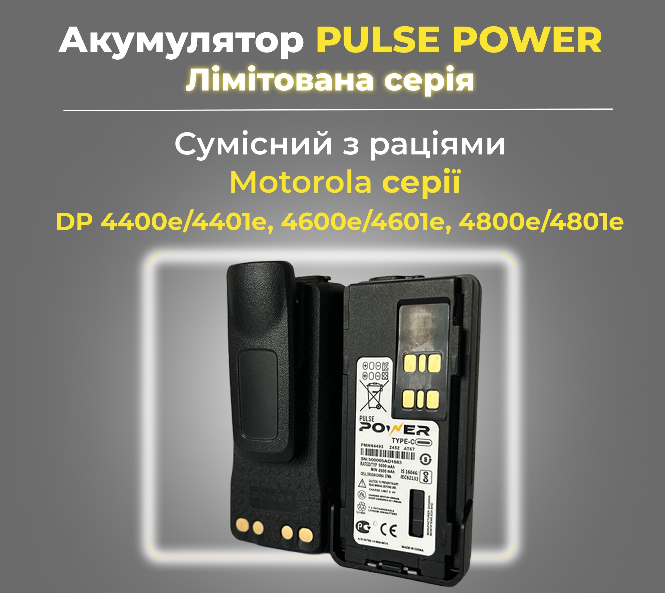 Пропонуємо Вам модель посиленого пило- та вологостійкого акумулятора PMNN4493 Pulse Power >місткістю 5000 mAh для рації Motorola.