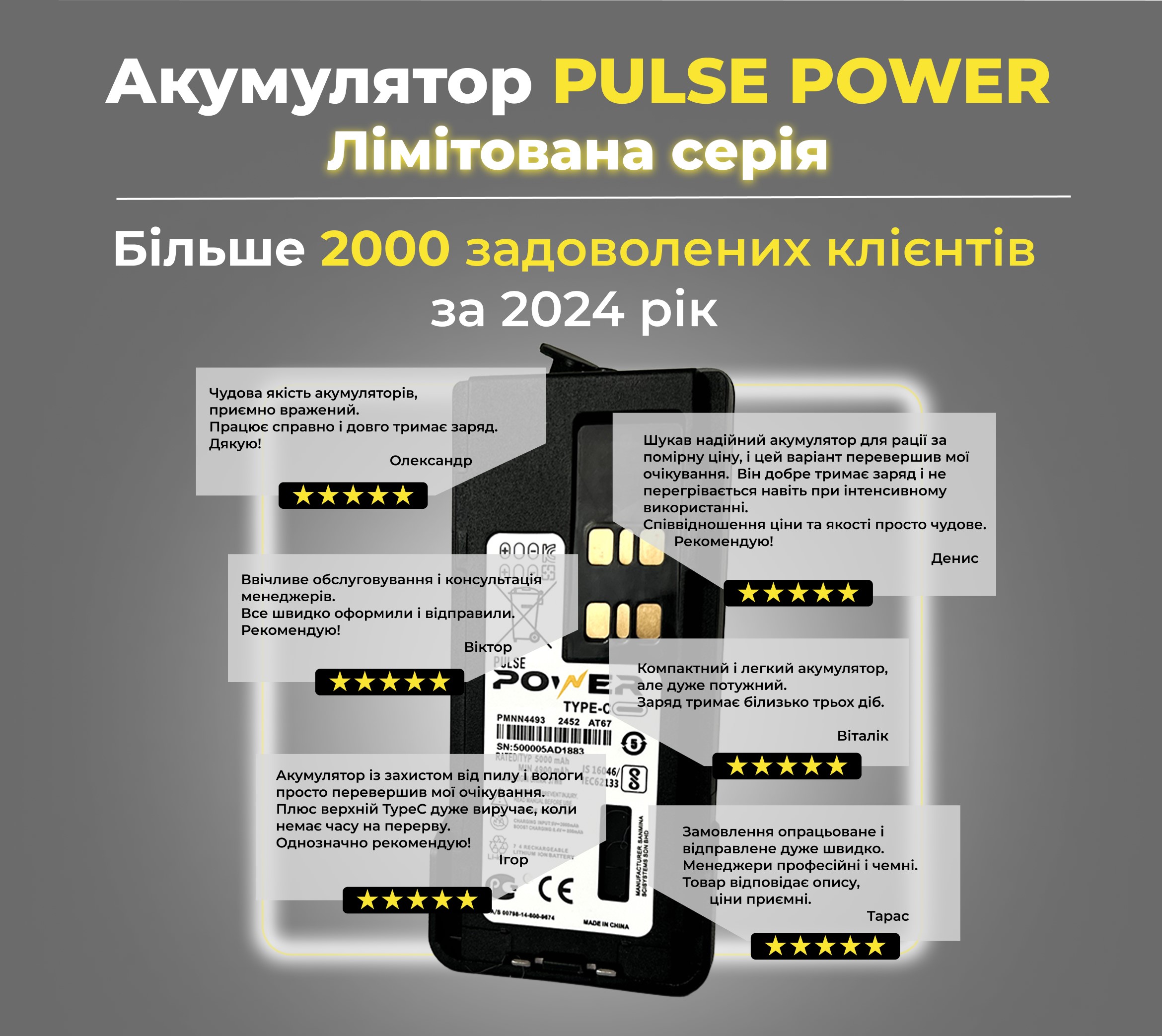 Цей акумулятор створений для тих, хто цінує якість, надійність і довговічність. Замовляйте акумулятор Pulse Power вже сьогодні та насолоджуйтесь безперервним зв’язком у найважливіші моменти!