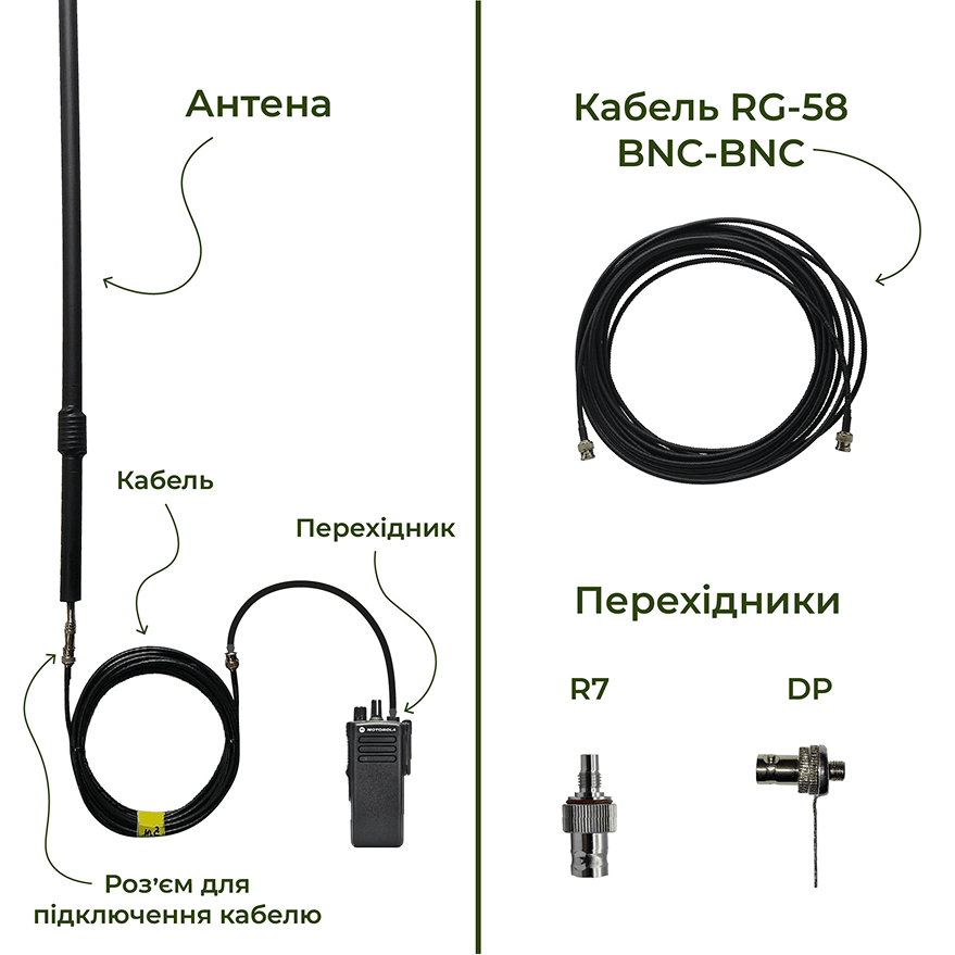Перехідники до Мотороли серії DP входять у комплект. Додатковий перехідник до Мотороли серії R7 можна, за потреби, дозамовити.