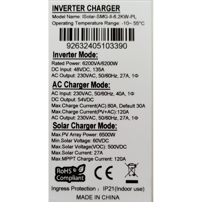 - Модель:ISolar-SMG-II-6.2KW-PL-Wifi