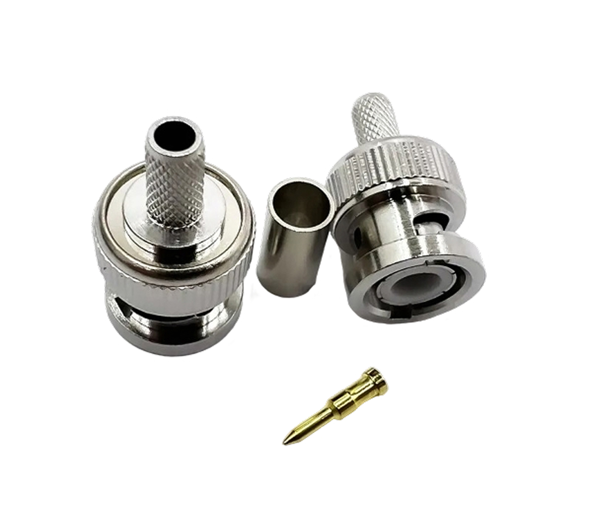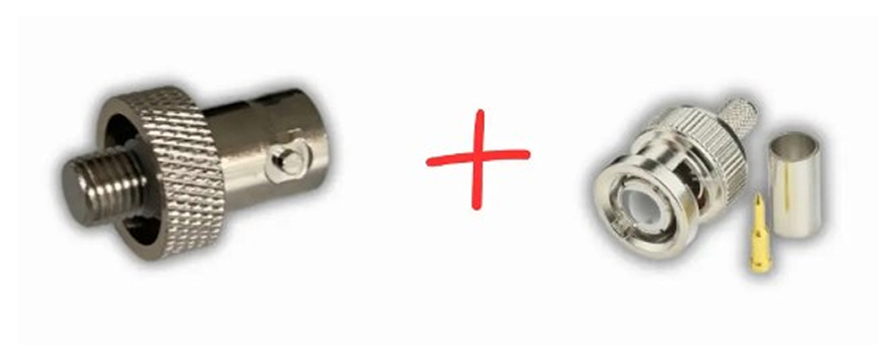 - Високочастотний роз’єм BNC RG58 (male 6 crimp) — професійний штировий конектор під обтиск, який встановлюється на кабель RG-58 для надійного з’єднання з адаптером.