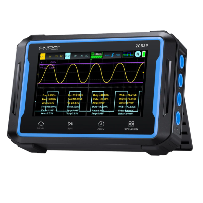 - Виміряні дані: Період, частота, пікове значення, максимальне значення, мінімальне значення, середнє значення, ефективне значення, амплітуда, робочий цикл, ширина імпульсу