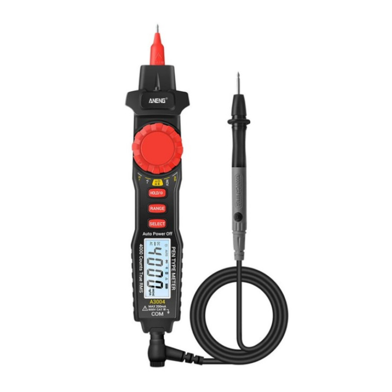 Цифровий мультиметр ANENG A3004 - це висококласний, портативний мультиметр, який дозволяє вимірювати постійну й змінну напругу, силу струму, опір і ємність. Також він має функцію продзвонювання ланцюгів, тесту напівпровідників і безконтактний детектор напруги NCV. Інструмент оснащений цифровим дисплеєм з підсвічуванням, що дозволяє легко зчитувати показання в темряві.