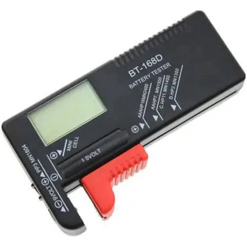 Тестер батарейок і акумуляторів BT168D дозволяє легко і швидко виміряти напругу елементів живлення, яке є показником рівня заряду батарей, акумуляторів. Даний прилад оснащений цифровим дисплеєм, на якому відображається напруга вимірюваного елемента. На зворотному боці тестера є шкала співвідношення напруги до рівня заряду, що дозволяє швидко оцінити ступінь зарядженості батарей або акумуляторів.