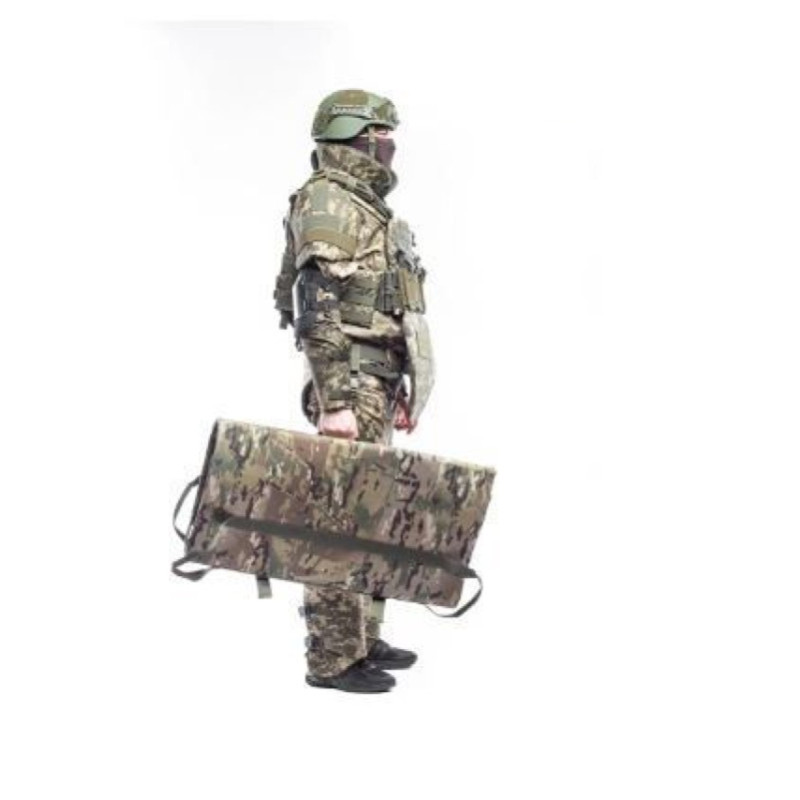Ця інноваційна броньована ковдра розроблена з метою забезпечення високого рівня захисту в екстремальних умовах, включаючи зони військових конфліктів, антитерористичні операції, а також для використання в цивільних цілях для захисту особистого складу та цінного обладнання. Основною її перевагою є універсальність використання, що дозволяє застосовувати її не тільки як захисне покривало, але й як ноші, щит, боковий захист від уламків у транспортних засобах, а також для кругового захисту в умовах міської забудови або в полі.