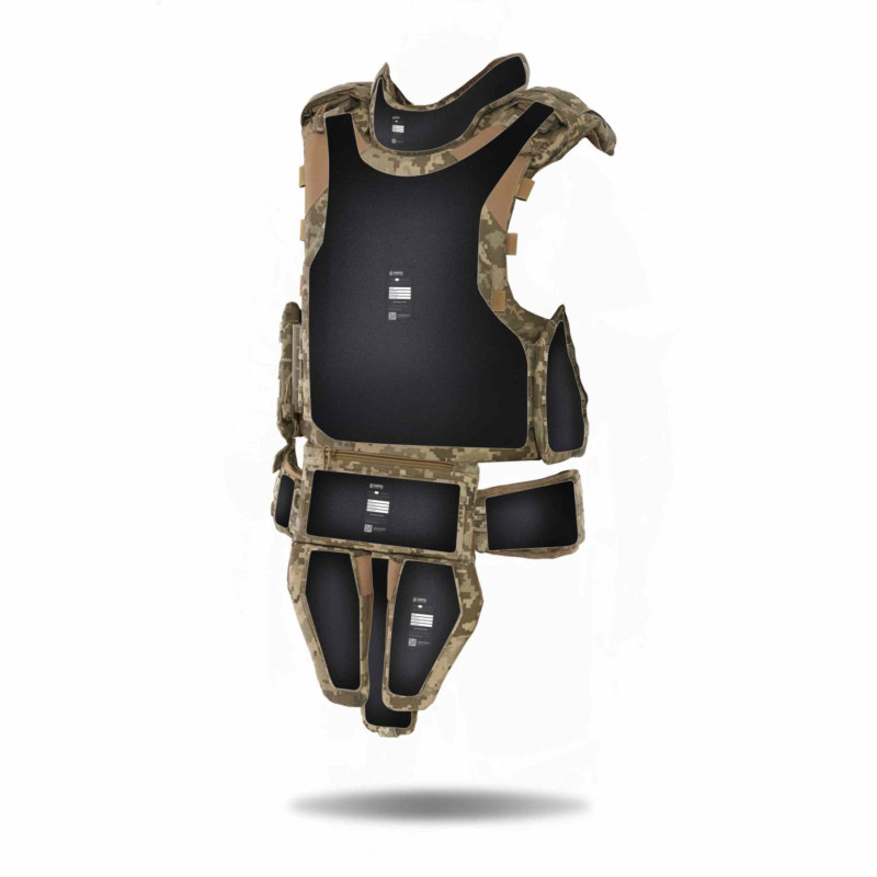 Комплектація: чохол бронежилета, балістичні пакети, модуль захисту шиї, модуль захисту кишківника, модуль захисту паху, РПС.