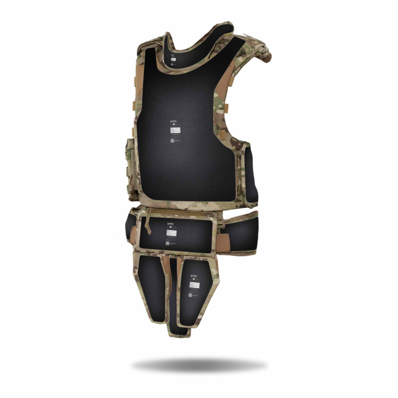 Комплектація: чохол бронежилета, балістичні пакети, модуль захисту шиї, модуль захисту кишківника, модуль захисту паху, РПС.