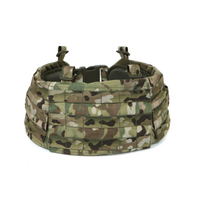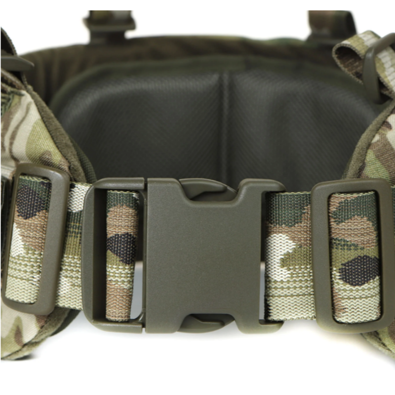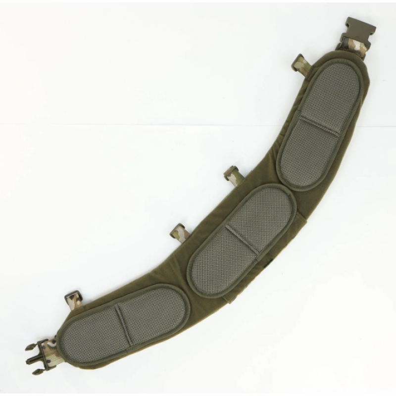 Пояс має анатомічну конструкцію та оснащений знімними буферами, які дають можливість підлаштувати пояс для комфортного використання та підтримувати поясницю. Міцний каркас з інтегрованим спеціальним матеріалом, який не дає поясу деформуватись і провісати під вагою спорядження. Присутня кишеня під балістичний захист