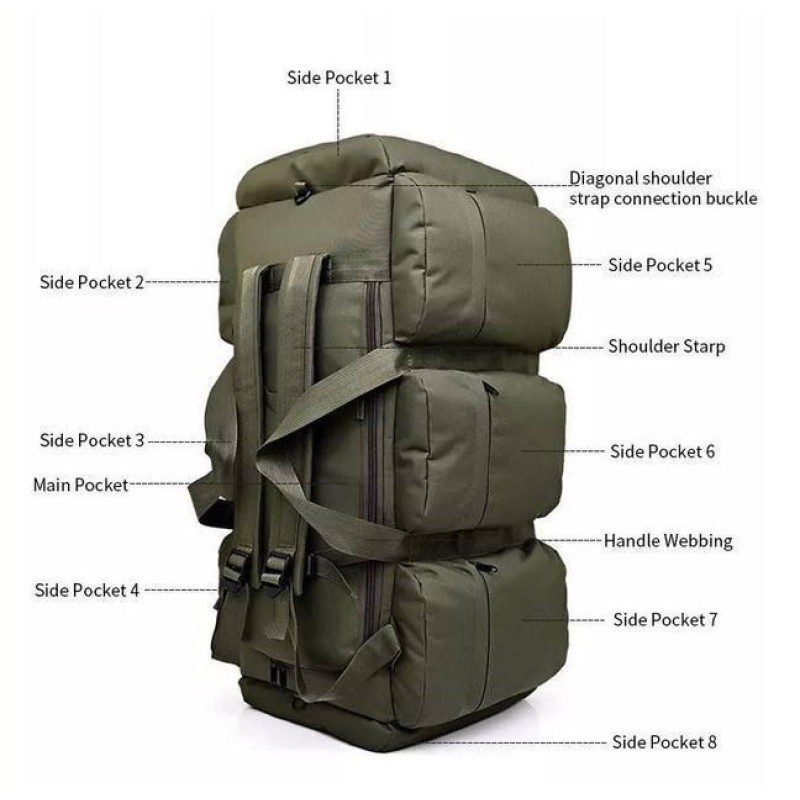 Зручна і велика тактична сумка для особистих речей. Має великий основний відсік, де можна зберігати габаритні речі, та 8 містких кишень на блискавках для зберігання дрібних предметів, магазинів або документів. У нижній частині сумка має лямки, тому її можна носити на спині як рюкзак.