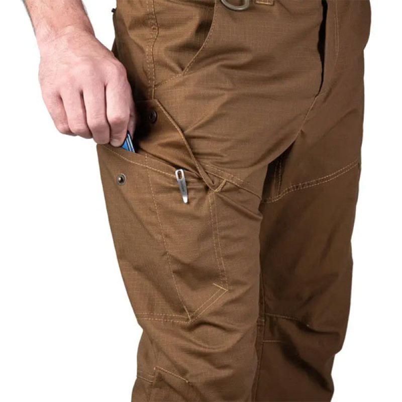Дана модель тактичних штанів має 6 кишень, стратегічно розміщених по всій довжині виробу: дві задні, прикриті клапанами на заклепках; зручні передні кишені; права бокова кишеня має розділення для телефону та ліхтарика або складного ножа; ліва бокова кишеня також має ще й замок.