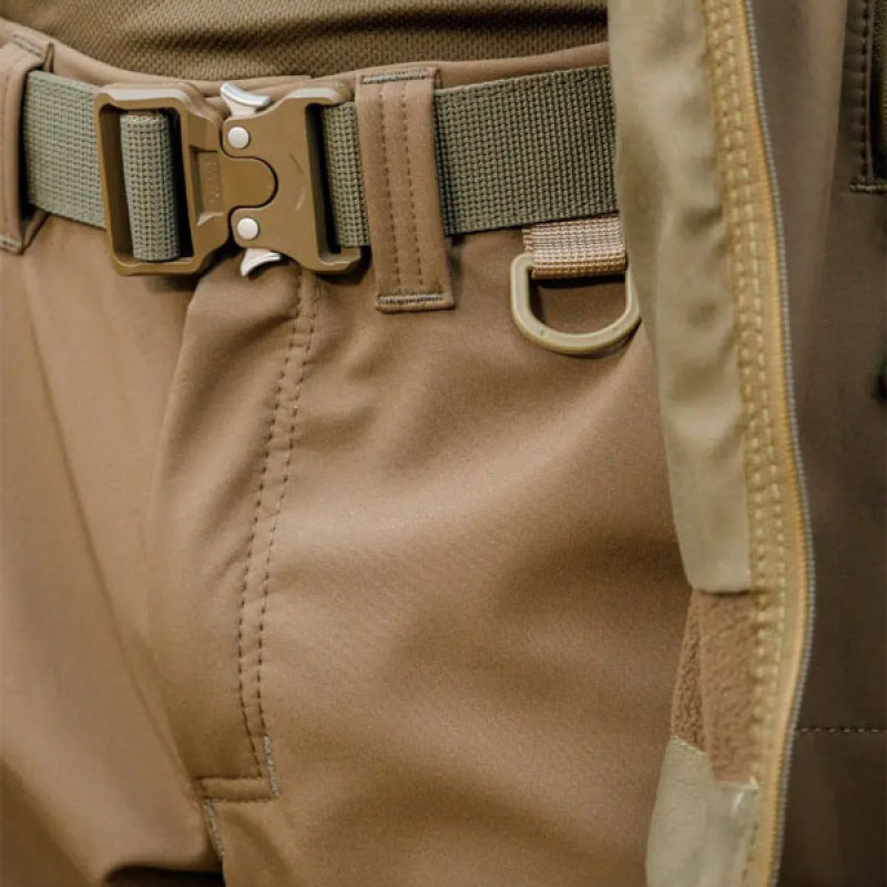 Тактичні штани з матеріалу softshell, розроблені для адаптації, мають ряд регульованих функцій. Пояс має еластичну гумку для зручної та надійної посадки, що дозволяє розтягнути ширину до 8 см. Застібки-липучки на щиколотках забезпечують щільне прилягання, запобігаючи потраплянню сміття та холодного повітря. Крім того, виточка на колінах надає форму і дозволяє комфортно рухатись.